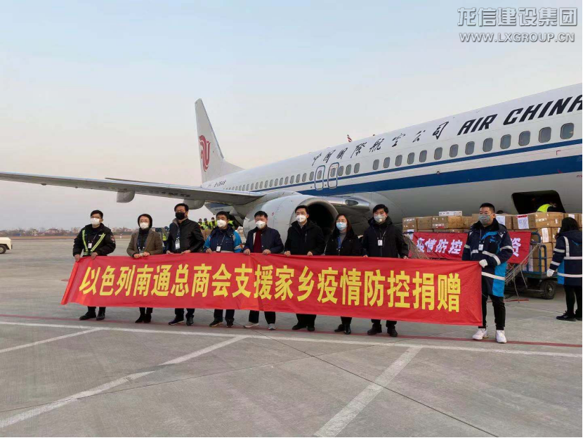 (3)1月29日,龍信海外以色列分公司積極響應(yīng)集團號召,以南通總商會名義,向南通在以色列南通二建、江蘇順通、國聯(lián)國際等企業(yè)發(fā)動募捐。此批捐贈物資包括14200套醫(yī)用防護服、1920個N95口罩及8000個醫(yī)用外科口罩,共300箱,計36萬余元(其中龍信集團18萬元)。從接到倡議到采購再到順利送達南通,僅用了3天半的時間。2月1日下午17點,在南通市政府的組織下,第一時間在機場分發(fā)至海門人民醫(yī)院、武漢南通一線醫(yī)護人員、中醫(yī)院、一院、二院、三院、六院、通大附院等單位。
