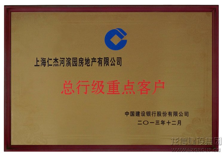 近日,上海仁杰河濱園房地產有限公司被中國建設銀行評為總行級重點客戶,被認定為經營管理好、信用等級高、發展前景廣闊、風險相對較低的優質客戶,為上海仁杰與建行建立銀企雙贏互動的戰略合作伙伴關系奠定了堅實的基礎。