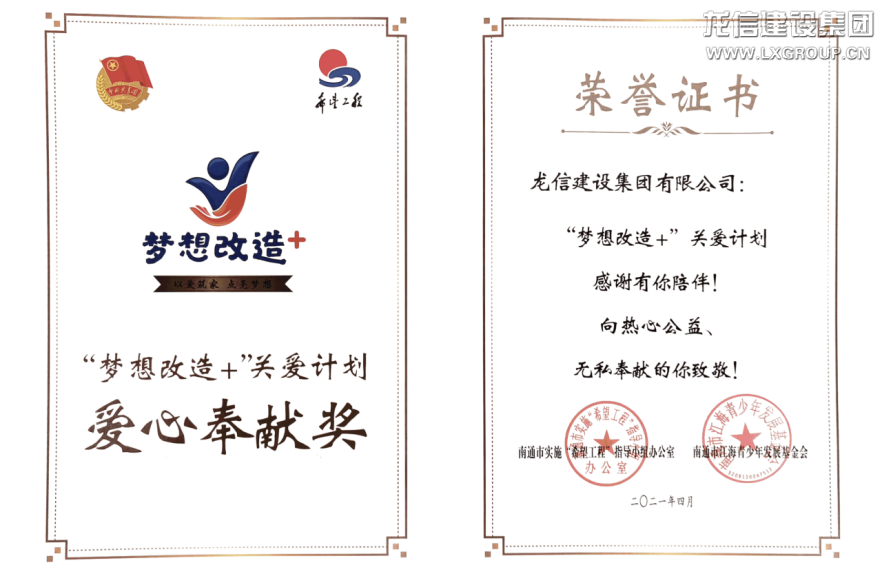 活動中,共青團南通市委對“夢想小屋”建設前期推進過程中涌現出的愛心單位和企業進行了表彰。龍信集團榮獲南通市“夢想改造+”關愛計劃愛心奉獻獎,集團團委書記王敏敏出席活動并領獎。