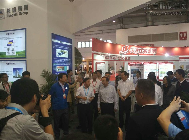 9月10日下午,住房和城鄉建設部副部長易軍蒞臨龍信集團展位參觀指導,龍信產業公司黃新廠長向易副部長詳細匯報了龍信集團在建筑產業現代化方面的發展情況,易副部長高度贊賞龍信集團在建筑產業現代化上已經走在國內前列,并殷切希望龍信集團發揮產業化建筑在質量、進度方面的優勢,通過做到標準化、模數化,降低PC項目總體造價,為中國建筑產業現代化的發展做出應有的貢獻。住房和城鄉建設部科技與產業化發展中心馮忠華主任、葉明總工等領導陪同參觀。