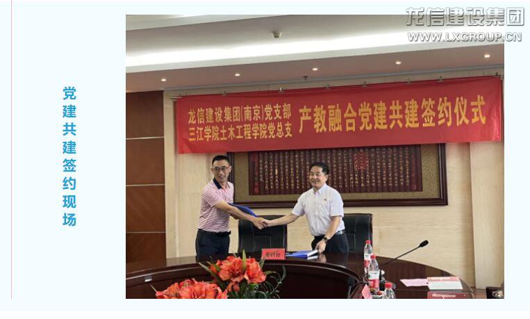 最后,王希賓書記、費永新副書記代表校企雙方進行了校企黨建共建合作協(xié)議的簽約。此次簽約,標志著三江學院土木工程學院與龍信集團在黨建共建合作辦學、技術合作等方面邁出了堅實的一步。