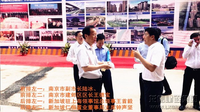 2013年8月16日上午,中、新領導考察團蒞臨江心洲在建項目南京生態科技島參觀考察,考察團由新加坡領導人力部代部長兼國家發展部政務部長陳川仁、駐華大使羅嘉良、駐滬領事館總領事王首毅、駐滬領事館領事陳櫘伊、國際企業發展局中國華東區副司長王俐恩、仁恒置業董事局主席鐘聲堅、勝科城鎮發展有限公司總裁趙萬成、仁恒置業執行董事執行副總裁洪志華,中方南京市副市長陸冰、南京市建鄴區區長王德寶、中新南京公司副總裁南京仁恒副總裁夏光寶、馮亞軍、張俊、王杰等其他領導組成,龍信建設集團江心洲項目經理范建剛全程陪同。