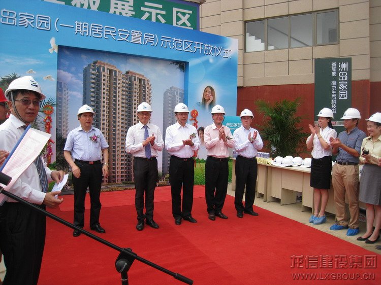 2013年8月22日上午,中共中央候補(bǔ)委員、江蘇省委常委、南京市市委書記楊衛(wèi)澤等一行與新加坡貿(mào)工部政務(wù)部長(zhǎng)張思樂(lè)、新加坡外交部政務(wù)次長(zhǎng)陳振泉等政務(wù)領(lǐng)導(dǎo)為江心洲在建項(xiàng)目南京生態(tài)科技島一期安置房樣板區(qū)剪彩并推門掲幕。龍信建設(shè)集團(tuán)南京生態(tài)科技島項(xiàng)目經(jīng)理范建剛?cè)膛阃瑓⒂^并做工作匯報(bào)。