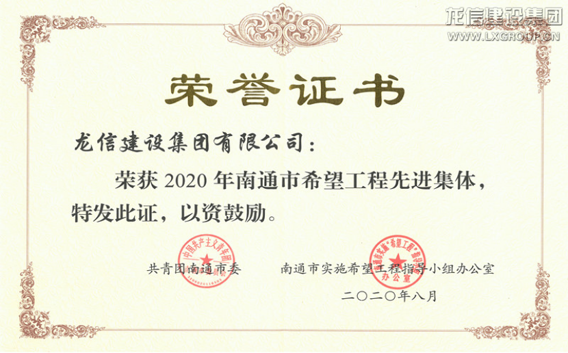 8月27日下午,由南通市委組織部、市總工會、團市委、市婦聯和市科協共同主辦的“圓夢金秋,放飛夢想——2020金秋助學圓夢行動”助力青少年成長成才活動在南通慈善博物館舉行。市委常委、組織部部長封春晴,市人大常委會副主任、市總工會主席葛玉琴,市政協副主席馬嘯平等出席活動。龍信集團榮獲“2020年南通市希望工程先進集體”稱號,集團黨委副書記、工會主席蔡颯爽出席并領獎。